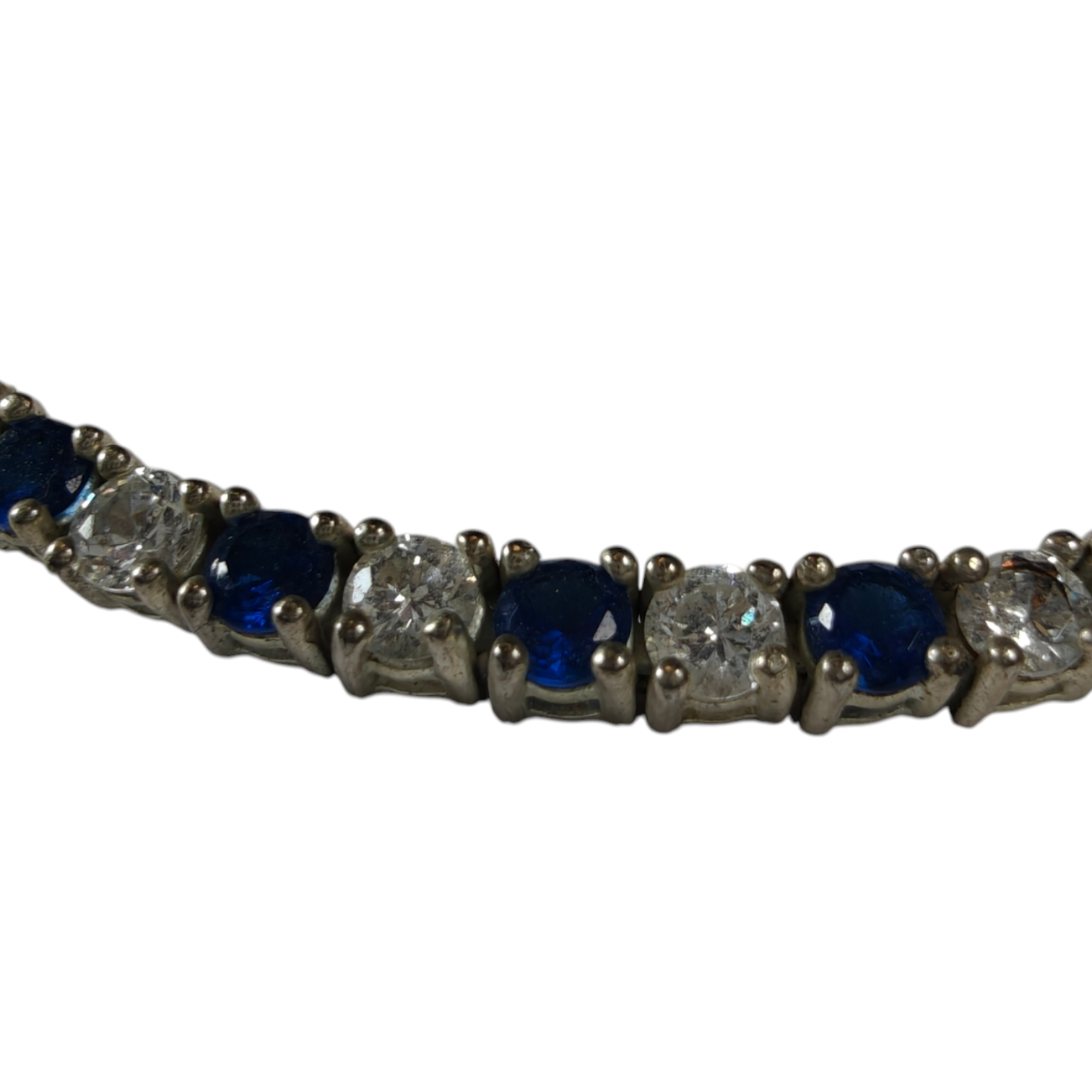 Elegant Silver Tennis Bracelet with Blue and White Cubic Zirconia