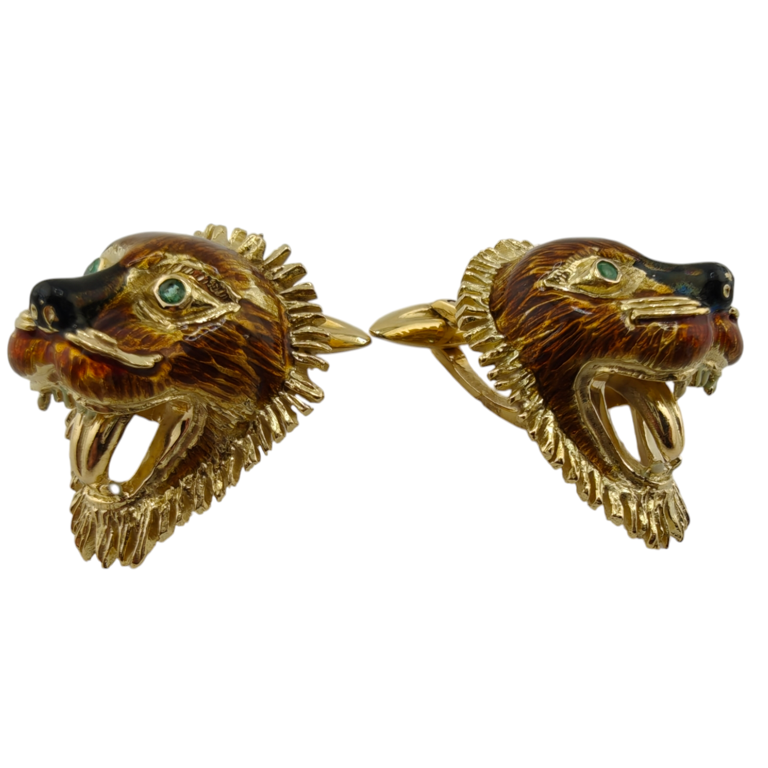 The combination of gold and emeralds not only signifies luxury but also represents a timeless elegance that transcends eras. These cufflinks are not just accessories; they are heirlooms that can be passed down through generations, carrying with them a legacy of style and refinement. Perfect as a gift for the man who appreciates fine jewelry, or as a personal indulgence that celebrates your unique taste, these lion cufflinks are a testament to the enduring allure of classic design.
